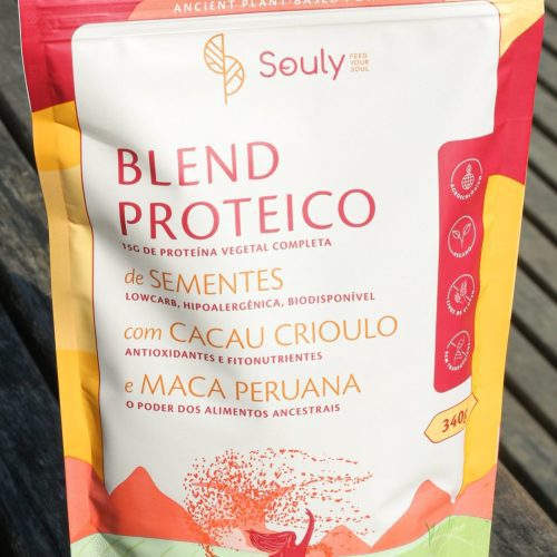 Características do Blend Proteico com Cacau e Maca Peruana Souly: 15g de Proteína Vegetal Low Carb Vegano Fonte de Triptofano e Proteínas de Enxofre (metionina e cisteína) Sem glúten e sem lactose Vitamina E, BCAAs, fenilalanina e tirosina, auxiliando na formação de músculos e ossos Fibras prebióticas Lignanas Sabor de chocolate caramelizado Fair Farming: Nossos produtos são fruto do Fair Farming que significa Agricultura Justa – generosa com o solo e com o agricultor.