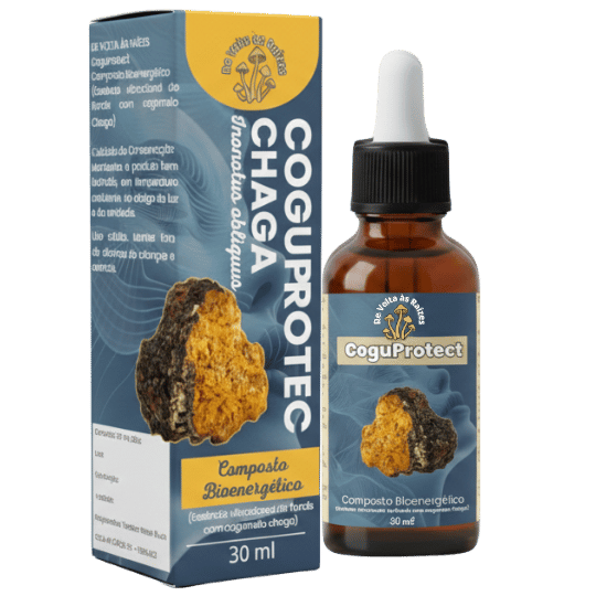 O CoguProtect Gotas é um composto bioenergético desenvolvido pela De Volta às Raízes, elaborado a partir da essência vibracional de florais e do corpo frutífero desidratado do cogumelo Chaga (Inonotus obliquus).
