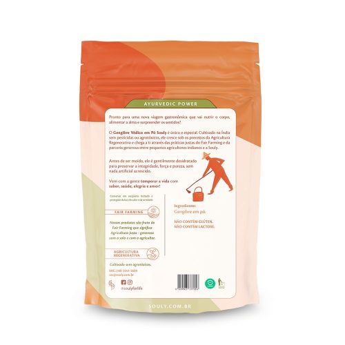 Inclua o Gengibre Védico em Pó da Souly em seu dia a dia a partir de shots pró-imunidade, chás, receitas que pedem uma picância natural mais presente ou em sucos e shakes termogênicos e note o poder transformador deste produto que é fruto do cultivo justo da Agricultura Regenerativa.