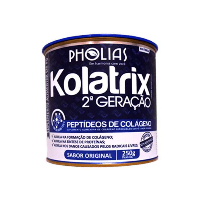 Os exclusivos Peptídeos Bioativos de Colágeno dos tipos 1, 2 e 3 estão presentes no Kolatrix 2a Geração, com destaque para a quantidade ideal de Colágeno do tipo II, garantindo uma maior absorção pelo organismo da proteína mais importante para saúde de suas articulações, 95% da composição da cartilagem articular é Colágeno tipo II. Além da suplementação proteica, o Kolatrix 2a Geração possui um mix de vitaminas e minerais que atua tanto na produção natural do colágeno quanto no combate aos radicais livres e à inflamação. Todos os produtos Pholias seguem os conceitos de Clean Label, com formulações que não utilizam ingredientes artificiais em sua formula, protegendo sua saúde de toxinas indesejáveis. Uma Fórmula em harmonia com você.