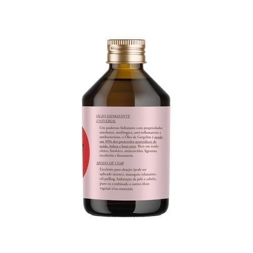 Um poderoso hidratante com propriedades emoliente, antifúngica, anti-inflamatória e antibacteriana, o Óleo de Gergelim é usado em 90% dos protocolos ayurvédicos de saúde, beleza e bem-estar tais como a oleação e oil-pulling.