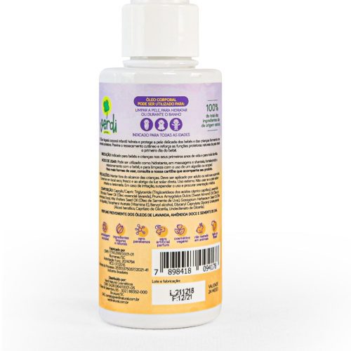 Contém Óleo Essencial de Lavanda, Óleo de Amêndoa Doce, Óleo de Semente de Uva e Algodão, Vitamina E, todos componentes naturais que hidratam e protegem a pele delicada dos bebês e das crianças formando uma camada protetora. Previne o ressecamento cutâneo e reforça as funções protetoras naturais da pele desde o primeiro dia do bebê.