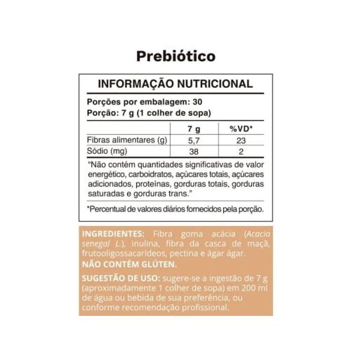 Goma acácia (2,1g), Inulina (1,75g), Fibra da casca de maçã (1,75g), Frutooligossacarídeos (0,7g), Pectina (0,35g) e Ágar ágar (0,35g)