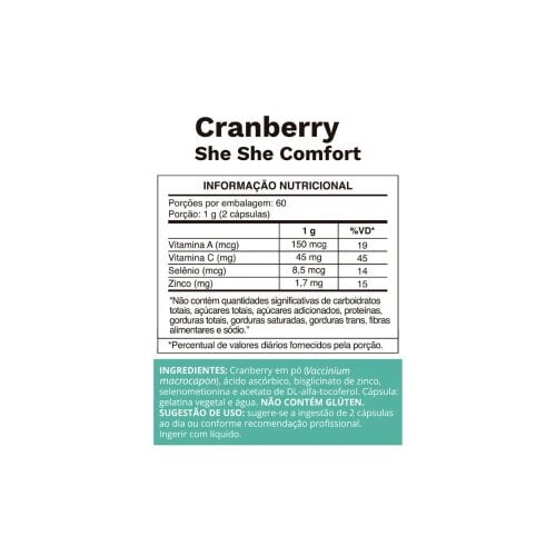 Quem já teve infecção do trato urinário (ITU) sabe como é ruim. Principalmente mulheres são acometidas pelo problema e, muitas vezes, de forma recorrente. Por isso, o She She Comfort foi formulado para melhorar a qualidade de vida e suportar o funcionamento do sistema imune, especialmente de mulheres. Cranberry em pó, vitamina C, vitamina A zinco, selênio e vitamina E fazem parte da composição.